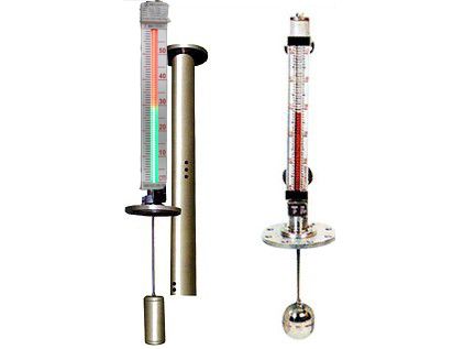 液位計(jì)根據(jù)浮力原理和磁性耦合作用原理工作。當(dāng)被側(cè)容器中的液全升降時(shí),液位計(jì)主導(dǎo)管中的浮子也隨之升降,浮子內(nèi)的磁鋼通過(guò)磁耦合傳遞到現(xiàn)場(chǎng)指示器,驅(qū)動(dòng)紅白翻柱翻轉(zhuǎn)180°,當(dāng)液位上升時(shí),翻柱由白色轉(zhuǎn)為紅色,當(dāng)液位下降時(shí),翻柱由紅色轉(zhuǎn)為白色,指示器的紅、白界位處為容器內(nèi)介質(zhì)液位的實(shí)際高度,從而實(shí)現(xiàn)液位的指示。加裝限位開(kāi)關(guān)實(shí)現(xiàn)液位報(bào)警與控制,加裝變送器實(shí)現(xiàn)標(biāo)準(zhǔn)信號(hào)輸出供顯示與控制。